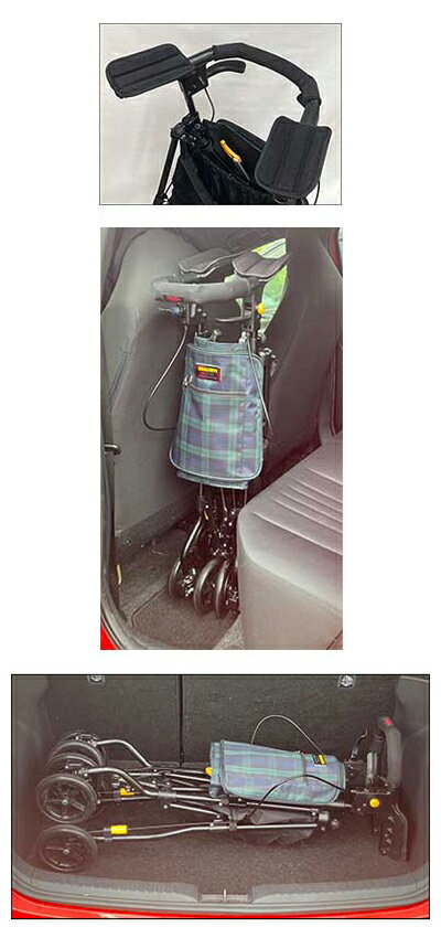 ●サイズ/幅59×奥行60×高さ85〜100(6段階/3cm)cm、折りたたみ時:幅31.5×奥行43×高さ91cm、ハンドル内幅:28cm●車輪サイズ/前輪14.5×後輪14.5cm●重さ/5.3kg●材質/フレーム:アルミ・スチール・プラスチック、バッグ:ナイロン●バッグ容量/前:3L、後:7L●積載荷重/前:3kg、後:5kg●最大使用者体重/75kg●標準機能/折りたたみ、3WAYキャスター(360°・左右40°・固定)、手元ブレーキ、駐車ブレーキ、杖・傘立て●生産国/日本・ヘルシーワンシリーズに前腕支持タイプが登場。・小さく折りたため、収納スペースも少なくて済み、持ち運びもラクチン。・パドル型ブレーキレバーを採用し、指先でもブレーキをかけることができます。●サイズ/幅59×奥行60×高さ85〜100(6段階/3cm)cm、折りたたみ時:幅31.5×奥行43×高さ91cm、ハンドル内幅:28cm●車輪サイズ/前輪14.5×後輪14.5cm●重さ/5.3kg●材質/フレーム:アルミ・スチール・プラスチック、バッグ:ナイロン●バッグ容量/前:3L、後:7L●積載荷重/前:3kg、後:5kg●最大使用者体重/75kg●標準機能/折りたたみ、3WAYキャスター(360°・左右40°・固定)、手元ブレーキ、駐車ブレーキ、杖・傘立て●生産国/日本・ヘルシーワンシリーズに前腕支持タイプが登場。・小さく折りたため、収納スペースも少なくて済み、持ち運びもラクチン。・パドル型ブレーキレバーを採用し、指先でもブレーキをかけることができます。
