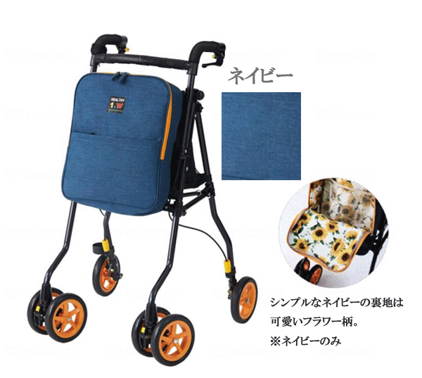 ~コンパクトで軽量!歩きやすいワイド仕様 小回りの利く、スリムミドルタイプ~ ◆従来のヘルシーワンと比較して60mmもワイドに。 ◆後輪に足が邪魔されることも少なく、より安心して歩行できます。 ◆バッグは色柄ともおしゃれ感いっぱいで、前後あわせて17リットルと大容量なので ショッピングにも最適。 ◆軽量でコンパクトだから、バスや電車の移動でも楽々便利です。 □ 機能 □ 【安心サポート】 ⇒体をすっぽり支え、楽な姿勢で歩行をサポート。 【軽量】 ⇒総重量が超軽量のコンパクトサイズ 【コンパクト折りたたみ】 ⇒簡単な操作でコンパクトに折りたためます。 【ハンドル4段階】 ⇒体に合わせて、ハンドルの高さを4段階調節 【大容量バッグ】 ⇒使いやすい W ファスナーなど、収納力に機能性をプラス 【ブレーキ調整】 ⇒手元ブレーキがききにくくなったら、ネジを回して簡単調節。 【駐車用ボタン式ストッパー】 ⇒ハンドルには駐車用ストッパー付き。ボタンを押すとストッパーがかかります。 【手元ロック解除】 ⇒ストッパーロック等、手元ブレーキレバーを握るだけで、ロックを解除します。 【3wayキャスター40】 ⇒直進、左右40度、360度の3通りの中から角度を選べる新型キャスター採用。 【安心の反射板】 ⇒暗い夜道も安心の反射板付き。 【つえ・傘立て】 ⇒うれしい気配り、杖・傘立て付き。 □ 仕様 □ 使用時:幅54×奥行55×高さ84・87・90・93cm 収納時:幅26×奥行34×高さ88cm 本体重量:約4.5kg 車輪サイズ:14.5cm 最大使用者体重:75kg (注文の際にラッピングボタンがございますが、包装いたしかねます。包装を選択されました場合は、ご注文後、包装代を訂正させていただき、ご連絡させていただきます。) ※北海道・沖縄へのお届けは別料金がかかります。 ※※※【必ずお読みください!】※※※※※※※※※※※※※※※※ こちらの商品は、≪大型商品≫のため、当店では、特にご指定がない場合は 商品箱へ直接送り状をお貼りする発送となりますのでご協力、 ご理解よろしくお願いいたします。 プレゼント、御祝などの際に手軽にお気持ちを伝える熨斗を 無料にてご準備させていただきます。 ご希望の場合はラッピングボタン、もしくは、備考欄にてご指示ください。 お名前をご希望の場合は、必ず、お名前をお書き添え下さいませ。 例 (御出産御祝/加藤) (御誕生日御祝/加藤) ※※※※※※※※※※※※※※※※※※※※※※※※※※※※※※