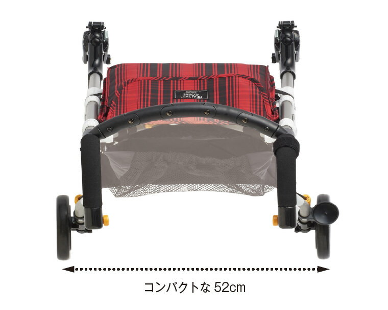 ●サイズ/幅53×奥行52×高さ75.5〜84.5(4段階/3cm)cm、折りたたみ時:幅27.5×奥行32×高さ79cm、ハンドル内幅:31cm●車輪サイズ/前輪14.5×後輪14.5cm●重さ/3.95kg●材質/フレーム:アルミ二ウム(一部プラスチック)、バッグ:ポリエステル●バッグ容量/前:1.7L、後:7L●積載荷重/前:2kg、後:5kg●最大使用者体重/75kg●標準機能/折りたたみ、3WAYキャスター(左右15°・左右60°・固定)、手元ブレーキ、駐車ブレーキ、杖・傘立て●生産国/日本・ヘルシーワンのミニタイプ。・約4分の1までコンパクトに!【ウィズワン】 [メーカー希望小売価格はメーカーカタログに基づいて掲載しています]