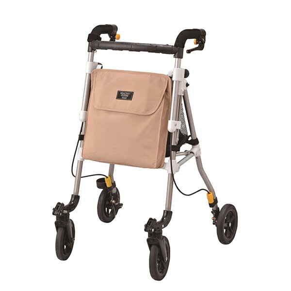 微可動キャスター採用のミニタイプ 従来品よりも足元スペースが4cm広がり、足運びがスムーズに。キャスターも3段階調整ができ、使いやすさもアップ。ハンドル高さ調整幅も広がり、小柄な女性など、幅広い方に対応しています。 左右15度の微可動モード付きキャスター採用。 サイズ/幅53×奥行52×高さ75.5〜84.5(4段階/3cm)cm、折りたたみ時:幅27.5×奥行32×高さ79cm、ハンドル内幅:31cm 車輪サイズ/前輪14.5×後輪14.5cm 重さ/3.95kg 材質/フレーム:アルミ二ウム(一部プラスチック)、バッグ:ポリエステル バッグ容量/前:1.7L、後:7L 積載荷重/前:2kg、後:5kg 最大使用者体重/75kg 標準機能/折りたたみ、3WAYキャスター(左右15°・左右60°・固定)、手元ブレーキ、駐車ブレーキ、杖・傘立て 生産国/日本軽量でスリムタイプヘルシーワンにロータイプが仲間入り。W53×D52×H75.5〜84.5cm