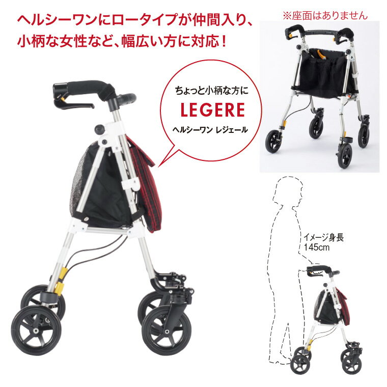 商品名 : ウィズワン 歩行車 おしゃれ ヘルシーワン LEGERE(レジェール) H1LR │ 歩行補助車 手押し車 オシャレ 高齢者 老人 介護用品 コンパクト 小柄 低身長 軽量 日本製 女性 レディース ロータイプ 折り畳み 折りたたみ おりたたみ