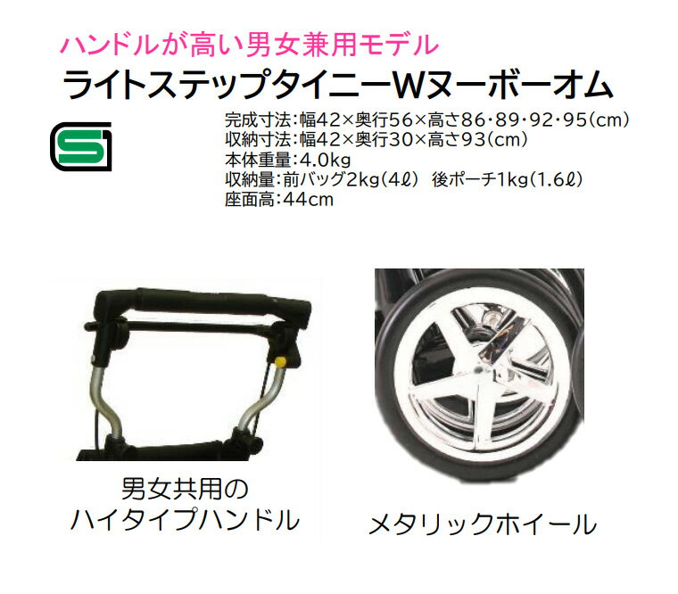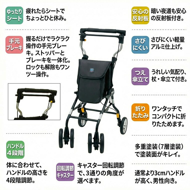 商品名 : シルバーカー おしゃれ 軽量 ライトステップタイニーW・HOMME(オム) ブラック ウィズワン │ 手押し車 老人 男性用 男性向け メンズ 介護用品 買い物カート シニアカー シルバーカート ショッピングカート おしゃれ 4輪 軽量 コンパクト 折りたたみ 高齢者 プレゼント