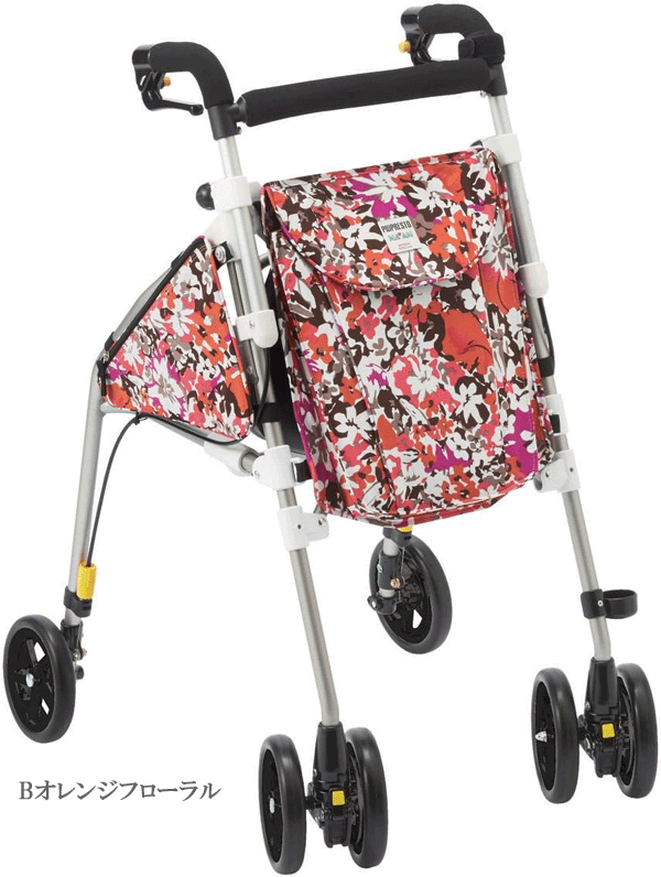 ~サイドポーチが付いて軽量ながらしっかり収納 足元スペースも広く歩きやすさ抜群~ ●ゆったりシート付きなのでお出かけに疲れてイスを探す心配もありません。 【体をすっぽり】 ⇒体をすっぽり支え、楽な姿勢で歩行をサポート。 【ハンドル4段階】 ⇒体に合わせて、ハンドルの高さを4段階調節。 【ブレーキ調整】 ⇒手元ブレーキがききにくくなったら、ネジを回して簡単調節。 【新型3WAYキャスター】 ⇒直進、左右40度、360度の3通りの中から角度を選べる新型キャスター採用。 【ミドルシート】 ⇒座面を倒すと座れます。ヒップを包み込むゆったりシート。 【駐車用ストッパー】 ⇒ハンドルには駐車用ストッパー付き。ボタンを押すとストッパーがかかります。 【折りたたみ】 ⇒ワンタッチでコンパクトに折りたためます。 【さびにくい】 ⇒さびにくい軽量アルミ仕上げ。 【杖・傘立て】 ⇒うれしい気配り、杖・傘立て付き。 【安心の反射板】 ⇒暗い夜道も安心の反射板付き。 □ 仕様 □ ●完成寸法/幅50×奥行62×高さ81.5・84・86.5・89(cm) ●収納寸法/幅27×奥行62×高さ82(cm) ●本体重量/5.2kg ●最大使用者体重/75kg (注文の際にラッピングボタンがございますが、包装いたしかねます。包装を選択されました場合は、ご注文後、包装代を訂正させていただき、ご連絡させていただきます。) ※北海道・沖縄へのお届けは別料金がかかります。 ※※※【必ずお読みください!】※※※※※※※※※※※※※※※※ こちらの商品は、≪大型商品≫のため、当店では、特にご指定がない場合は 商品箱へ直接送り状をお貼りする発送となりますのでご協力、 ご理解よろしくお願いいたします。 プレゼント、御祝などの際に手軽にお気持ちを伝える熨斗を 無料にてご準備させていただきます。 ご希望の場合はラッピングボタン、もしくは、備考欄にてご指示ください。 お名前をご希望の場合は、必ず、お名前をお書き添え下さいませ。 例 (御出産御祝/加藤) (御誕生日御祝/加藤) ※※※※※※※※※※※※※※※※※※※※※※※※※※※※※※