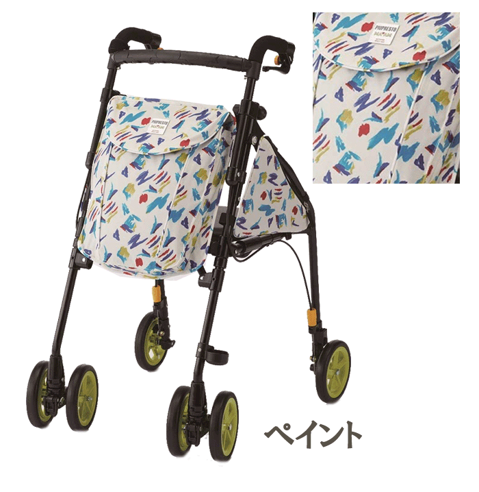 ★代引き決済はお受けできません★ こちらの商品はメーカー直送手配になりますので 代引き、時間指定、日祝日配達、のし入れは指定いただけませんのでご注意ください。 ~軽量ながらしっかり収納! 足元スペースも広くシート付きだから使いやすさ満点~ ≪スタイル・機能はそのままに、グレード感のあるファブリックを使用≫ ◆サイドポーチが付いていて収納力が大幅アップ ◆ゆったりシート付きなのでお出かけに疲れてイスを探す心配もありません。 □ 機能 □ 【安心サポート】 ⇒体をすっぽり支え、楽な姿勢で歩行をサポート。 【折りたたみ】 ⇒ワンタッチでコンパクトに折りたためます。 【ハンドル4段階】 ⇒体に合わせて、ハンドルの高さを4段階調節 【ミドルシート】 ⇒座面を倒すと座れます。ヒップを包み込むゆったりシート。 【ブレーキ調整】 ⇒手元ブレーキがききにくくなったら、ネジを回して簡単調節。 【駐車用ボタン式ストッパー】 ⇒ハンドルには駐車用ストッパー付き。ボタンを押すとストッパーがかかります。 【手元ロック解除】 ⇒ストッパーロック等、手元ブレーキレバーを握るだけで、ロックを解除します。 【3wayキャスター40】 ⇒直進、左右40度、360度の3通りの中から角度を選べる新型キャスター採用。 【安心の反射板】 ⇒暗い夜道も安心の反射板付き。 【つえ・傘立て】 ⇒うれしい気配り、杖・傘立て付き。 □ 仕様 □ 使用時:幅50×奥行62×高さ81.5・84・86.5・89cm 収納時:幅27×奥行62×高さ82cm 重量:5.2kg 座面の高さ:43cm 最大使用体重:75kg (注文の際にラッピングボタンがございますが、包装いたしかねます。包装を選択されました場合は、ご注文後、包装代を訂正させていただき、ご連絡させていただきます。) ※北海道・沖縄へのお届けは別料金がかかります。
