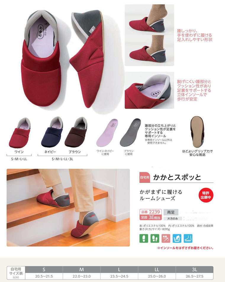 商品名 : 介護シューズ おしゃれ 履きやすい 徳武産業 あゆみシューズ かかとスポッと 2239/ ワイン 両足販売