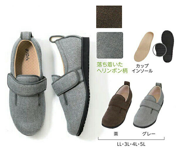 商品名 : 介護シューズ あゆみ メンズ おしゃれ 徳武産業 ダブルマジックII ヘリンボン3E 1037 男性用シューズ 介護靴 室内用靴 あゆみシューズ マジックテープ 紳士用 介護用品 大きいサイズ 幅広 甲高 むくみ 外反母趾 リハビリシューズ 施設用 室内履き