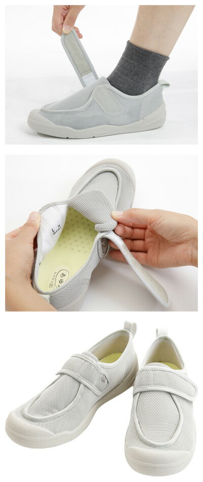 ・洗濯機で洗えるリハビリシューズ。・丸洗いOKすぐ乾く。通気性の良いメッシュ生地を使用。洗濯機で洗えて、速乾性にも優れており、いつでも清潔に。・メッシュタイプのインソールで足のムレも気にならず、いつも快適な履き心地。・靴内に臭いやムレがこもりにくいよう、靴底に小さな空気穴を開けています。・しっかりした「かかと芯」と「靴底」でリハビリ歩行に最適です。・履き口は大きく開いて履きやすい。・ベルトで足周りをしっかりホールド。・安定感のある踵と靴底。・踵から土踏まずまで広くフラットな形状。・正しい位置で曲がるしっかりとした靴底。・つま先はつまずきにくい形状。●サイズ/S:21.0〜21.5cm、M:22.0〜22.5cm、L:23.0〜23.5cm、LL:24.0〜24.5cm、3L:25.0〜25.5cm、4L:26.0〜26.5cm、5L:27.0〜27.5cm、6L:28.0〜28.5cm●重さ/約250g(片足Lサイズ)●材質/表素材:ポリエステル100%(メッシュ)、内素材:ポリエステル100%、底材:TPR●生産国/中国●洗濯機可(ネット使用)●室内用●男女兼用・洗濯機で洗えるリハビリシューズ。・丸洗いOKすぐ乾く。通気性の良いメッシュ生地を使用。洗濯機で洗えて、速乾性にも優れており、いつでも清潔に。・メッシュタイプのインソールで足のムレも気にならず、いつも快適な履き心地。・靴内に臭いやムレがこもりにくいよう、靴底に小さな空気穴を開けています。・しっかりした「かかと芯」と「靴底」でリハビリ歩行に最適です。・履き口は大きく開いて履きやすい。・ベルトで足周りをしっかりホールド。・安定感のある踵と靴底。・踵から土踏まずまで広くフラットな形状。・正しい位置で曲がるしっかりとした靴底。・つま先はつまずきにくい形状。●サイズ/S:21.0〜21.5cm、M:22.0〜22.5cm、L:23.0〜23.5cm、LL:24.0〜24.5cm、3L:25.0〜25.5cm、4L:26.0〜26.5cm、5L:27.0〜27.5cm、6L:28.0〜28.5cm●重さ/約250g(片足Lサイズ)●材質/表素材:ポリエステル100%(メッシュ)、内素材:ポリエステル100%、底材:TPR●生産国/中国●洗濯機可(ネット使用)●室内用●男女兼用