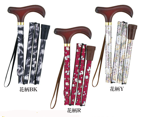商品名 : 折りたたみコンパクトステッキF長さ約70~80cm 杖 つえ 1本杖 折りたたみ コンパクト ストラップ 木製グリップ 花柄 シンプル 歩行補助 お出かけ