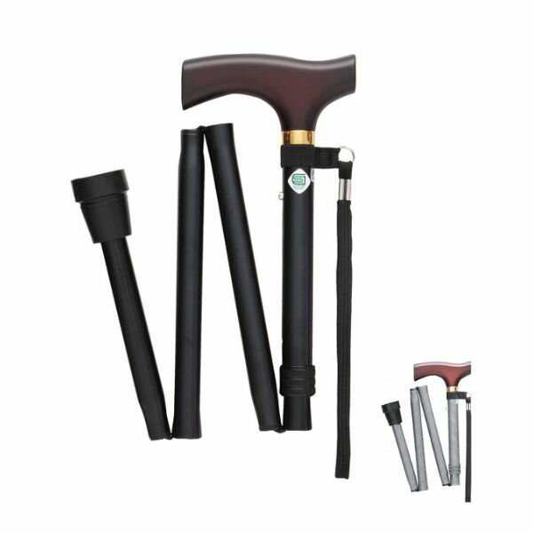 マキテック 充実ステッキ 折りたたみ・細身 黒花柄 FS-10KF