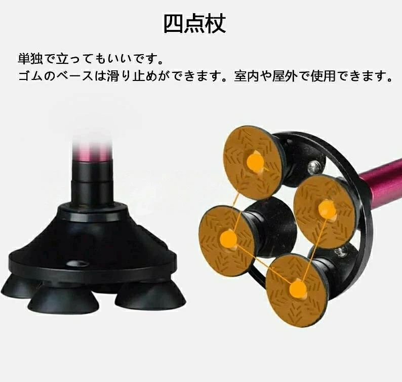 商品名 : 伸縮ステッキ 自立式 4点杖 軽量 つえ 男女が適用 アルミ 歩行補助杖 10段階調節 身長142〜188cmが似合います 敬老の日 プレゼント