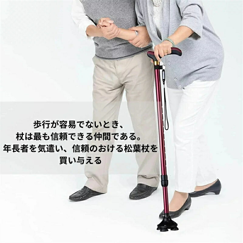 商品名 : 伸縮ステッキ 自立式 四つ足の杖 軽量 つえ 杖 四つ足 男女が適用 アルミ 歩行補助杖 10段階調節 身長140〜190cmが似合います 敬老の日 プレゼント