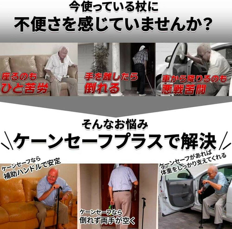 立ち上がり補助バンドル。 アルミ合金製 腰掛ける杖 座れる 歩行補助杖 2ハンドル式なので体重が左右均等化されて立ち上がる時や座るときにバランスを保つことができる。 【1本に2つの機能を備えた杖、切り替えが簡単】このステッキ杖は2種類のウォーキングベースが付属しています、 安全で丈夫なビッグ4本足ベース、フルグラウンドウォーキングを実現する360°回転4点杖ベース、軽量で滑りにく1本杖ベース。 使用環境や歩行ニーズに応じて、適切なベースを交換できます、1つの杖の多機能を実現し、杖の需要を全面的に解決。 お父さんお母さん、おじいちゃんおばあちゃんが最近疲れやすくなってきた、 あんまり外に出たがらなくなってきた、と感じたら是非こちらのステッキチェアをプレゼントしてみてください。 4点支えがついて、雪の上にも砂利道にも滑りにくくなります。 自立式だから、手を離しても倒れないので安心です。 持ち手は汗をかいた手でも滑りにくい滑り止め加工を施しています。 12段階調整なので、身長に合わせて調整できます。 LEDライト付き杖 ※乾電池は付属していません。 夜道や暗い足元を照らしてくれます。また、停電などの緊急時や、夕方のお散歩などでも大活躍します。 ステッキ 折りたたみ ハイグレード ワンタッ 軽量 スタイリッシュ 折畳み式 四脚 便利 お年寄り 高齢 シート 杖 階段補助 歩行補助杖 滑り止め アウトドア 護身 携帯チェア 持ち運び お母さん お父さん 母の日 父の日 プレゼント 男女兼用 敬老の日 介護用品 お散歩 お年寄り トイレ補助 松葉杖 メーカー希望小売価格はメーカーカタログに基づいて掲載しています