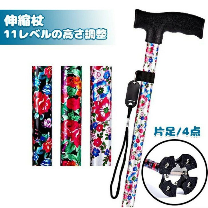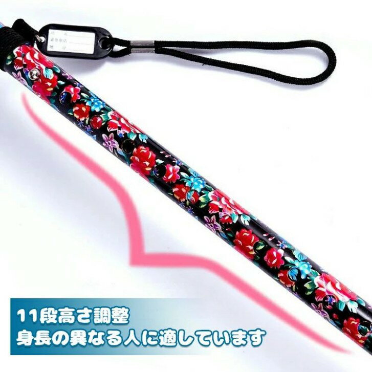 商品名 : 杖 自立式 杖 軽量 女性用 つえ 介護 ステッキ おしゃれ 花柄 伸縮 伸縮式 自立式 自立杖 歩行補助 長さ調節 折り畳み不可 補助 レディース 婦人用 敬老の日 誕生日 プレゼント バレンタイン ギフト 人気