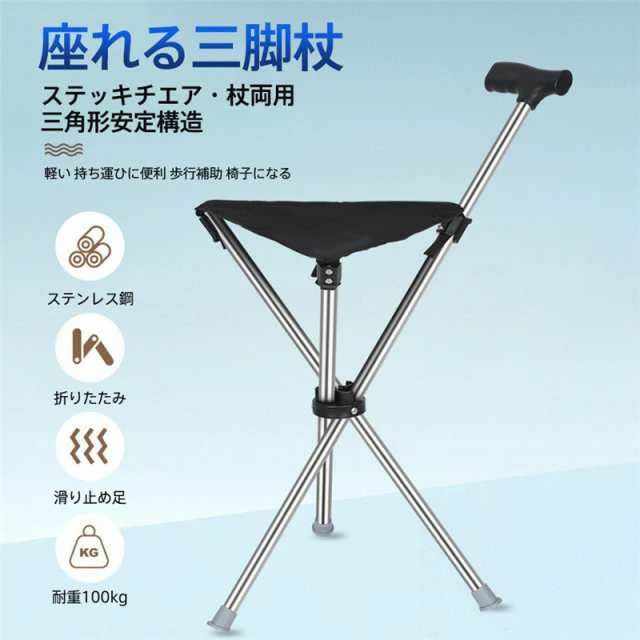 商品名 : 滑り止め 折りたたみ 歩行補助 杖 年寄り 女性 介護 男性 ステッキ 休憩 イス 椅子 座れる杖 自立式 チェアー 軽量 三脚