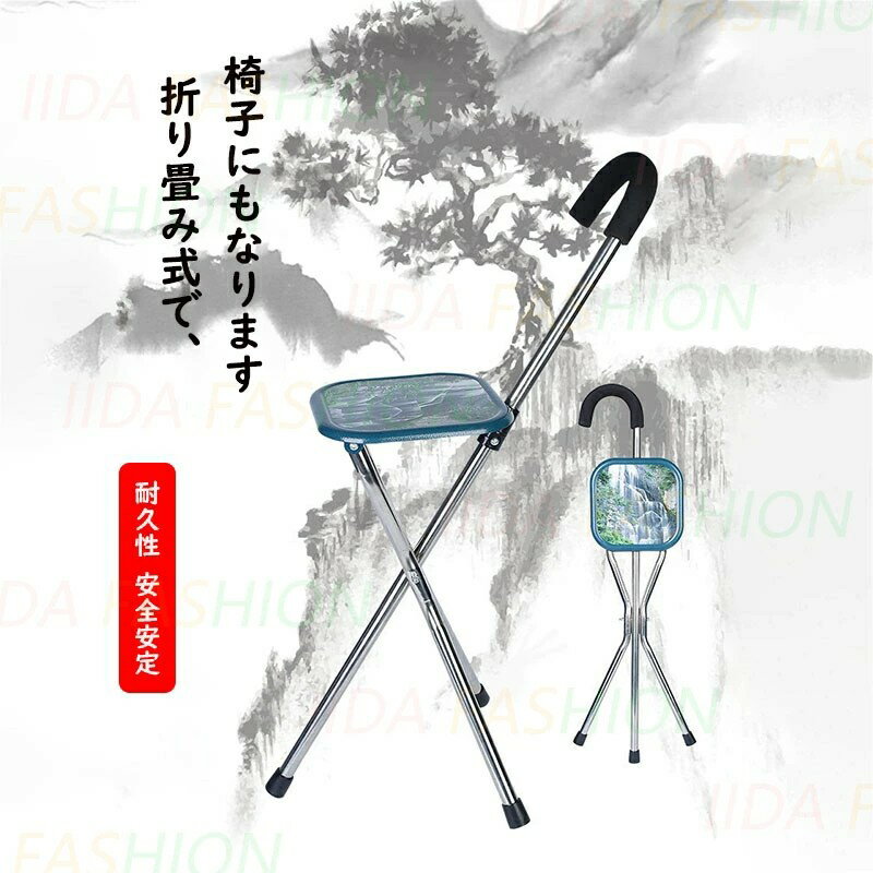 商品名 : ステッキチェア 高齢者 軽量 ステンレス製 折りたたみ ステッキチェアー おしゃれ 介護 補助 歩行 リハビリ ステッキ 椅子 トレッキング 杖 三脚 折り畳み ゴルフ観戦 釣り スポーツ観戦 持ち運べる椅子 行列待ち 男女兼用 休憩椅子 杖が椅子に変身 便利グッズ