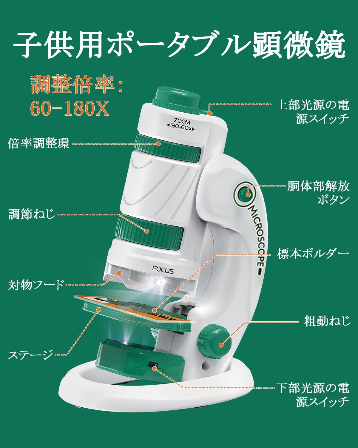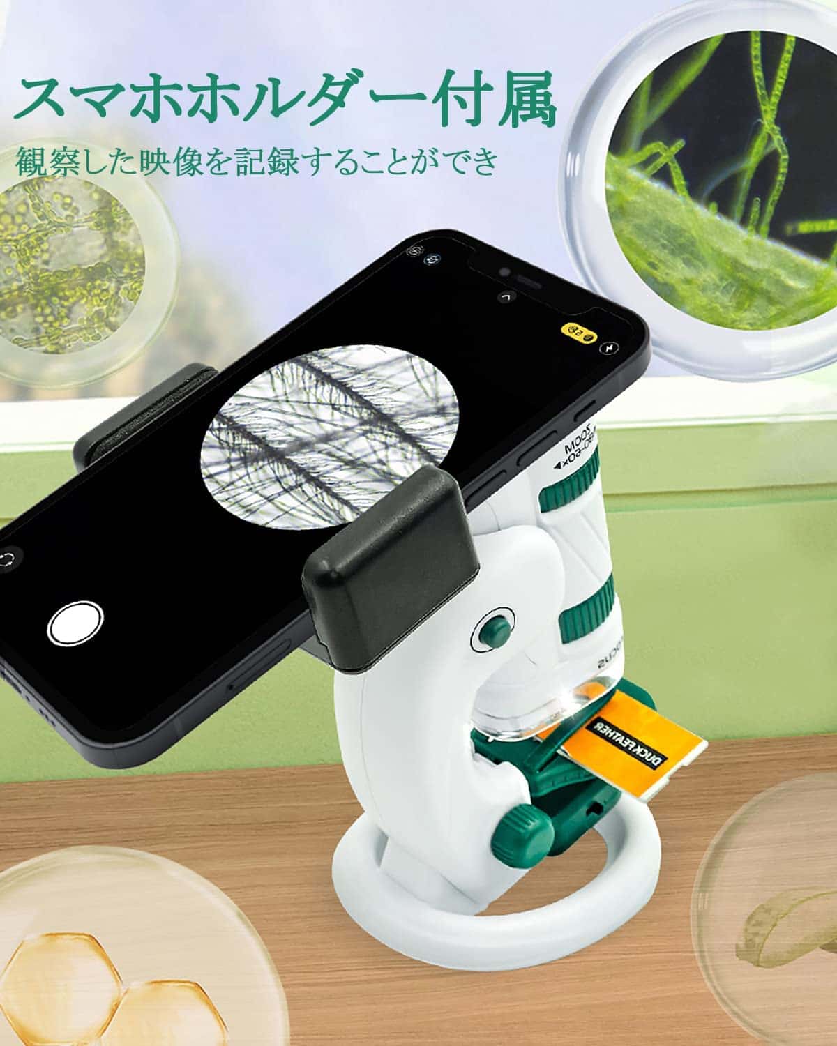 商品名 : ミニ顕微鏡セット 子供用 60〜180倍 着脱式台座 子供 自由研究 スマホホルダー ハンディ顕微鏡 スライドガラス プレゼント 子供の日 誕生日