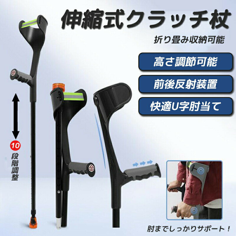 2本セット ロフストランドクラッチ リハビリ 補助 手術後 介護 松葉杖 病院 室内 伸縮 高さ調 軽量 便利 ステッキ グリップ 骨折 怪我 歩行を補助 人間工学 高齢者 身障者 障害者 男性 女性用 グリップ キャップ付き クラッチ杖 おしゃれ アルミ製 2本 リハビリ杖 送料無料