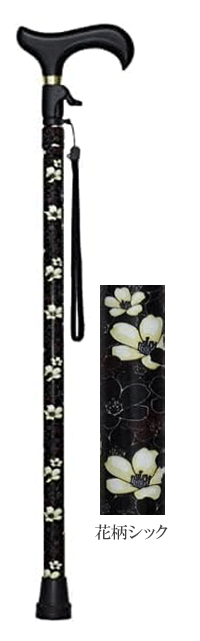 商品名 : 無段階伸縮ステッキ約66~103cm 杖 つえ ステッキ 伸縮タイプ 木製グリップ ストラップ お出かけ 歩行サポート 転倒防止 予防 シック 花柄