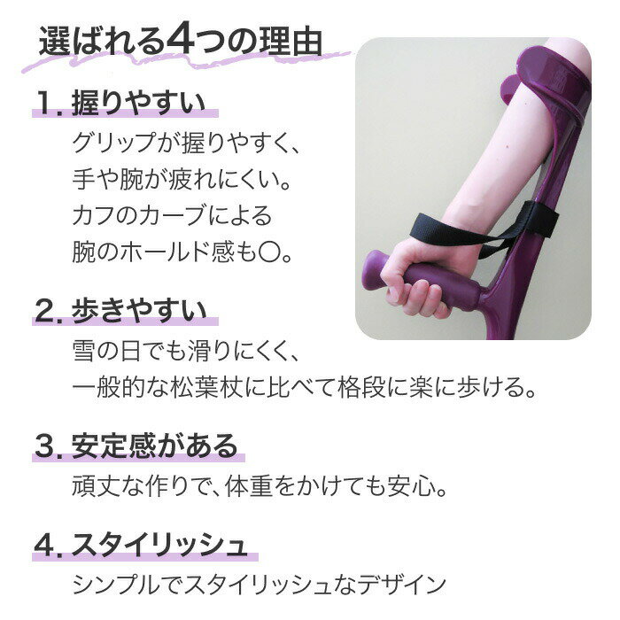 □型番/14-1-1 ブラックベリー(トールサイズ) 14-1-3 ブラックベリー(レギュラーサイズ) 14-1-2 ブラックベリー(プチサイズ) 14-6-1 ターコイズ(トールサイズ) 14-6-3 ターコイズ(レギュラーサイズ) 14-6-2 ターコイズ(プチサイズ) 14-7-1 ブラック(トールサイズ) 14-7-3 ブラック(レギュラーサイズ) 14-7-2 ブラック(プチサイズ) 14-8-1 ブリリアントレッド(トールサイズ) 14-8-2 ブリリアントレッド(レギュラーサイズ) 14-9-1 ブリリアントブルー(トールサイズ) 14-9-2 ブリリアントブルー(レギュラーサイズ) 14-2-1 ピンク(トールサイズ) 14-2-3 ピンク(レギュラーサイズ) 14-22-1 ブリリアントターコイズ(トールサイズ) 14-22-2 ブリリアントターコイズ(レギュラーサイズ) 14-21-1 ブラックカフ・ブラックベリー(トールサイズ) 14-21-2 ブラックカフ・ブラックベリー(レギュラーサイズ) ■サイズ/トールサイズ 地面〜グリップ:76〜96cm(9段階) グリップ〜カフ:23cm 適応身長:160〜190cm程度 レギュラーサイズ 地面〜グリップ:61〜81cm(9段階) グリップ〜カフ:23cm 適応身長:140〜170cm程度 プチサイズ 地面〜グリップ:59〜79cm(9段階) グリップ〜カフ:17cm 適応身長:130〜160cm程度 ■重量/トール:620g、レギュラー:580g、プチ:460g ■耐荷重/トール・レギュラー:140kg、プチ:100kg ■材質/アルミ(杖部分) ・肘支えがしっかりしたオープンタイプのクラッチ。 ・お子様、小柄なかたから大柄な方まで選んでいただけます。 ・もち手はソフトですべりにくく、持ちやすい波型になっています。 ・便利なストラップ(3-4)を付属しています。 【プロト・ワン】 【当店について】 当店は高知県に所在している介護用品や福祉用具をメインに取り扱っているショップです。在庫品もたくさんご用意しています。各エリアに倉庫拠点を置き、全国のお客様へいち早くお届けできるよう在庫を取り揃え、配送までの日数を極力お待たせすることないよう体制を整えています。(各メーカーから直送させていただいたり、メーカーより取り寄せ後発送する商品もございます)シニア層のお客様に人気のある商品や、介護現場での必要不可欠なグッズ、アイディア用品、便利グッズなどもご用意しており、ご好評いただいています。紙オムツなど医療費控除対象商品も数多く取り揃え、一度にたくさん購入が必要な場合は、ケース出荷での対応も行っております。まとめ買いや大量購入、病院や施設での備蓄にとお買い求めいただいています。ご購入前にお見積りのご要望がございましたら、作成もご相談受け付けておりますので、お気軽にお問い合わせください。 【当店では以下のような商品を取り扱っております。】 [食事関連] 介護食 健康食品 栄養補助食品 ハイカロリー 高カロリー 区分1 区分2 区分3 区分4 容易にかめる 歯ぐきでつぶせる 舌でつぶせる かまなくてよい ドリンク お箸 スプーン フォーク グリップ カフ 食器類 すべり止めシート カップ吸い飲み器 調理器具 オーブナー ロ腔ケア用品 食事用エプロン 飲料 飲み物 栄養補助ゼリー ゼリー飲料 自助具 カトラリー コップ お皿 オーラルケア 歯ブラシ 歯ぶらし 歯磨き 入れ歯洗浄 食事用前掛け [入浴関連] シャワーチェア 浴槽台 浴槽手すり 浴槽ポード バスリフト バスマット バスシート シャワーキャリー 入浴用 介助ベルト すのこ 入浴用クッション 防水力バー エプロン 入浴エプロン 介助用エプロン シューズ シャワー付チェア 簡易浴槽 入浴用担架 入浴用小物 入浴剤 清拭料 ボディーソープ シャンプー 保湿剤 清拭タオル 風呂いす お風呂椅子 バスボード シャワー用車いす 入浴介助エプロン お風呂マット 滑り止めマット すべり止め 転倒予防 クッション 業務用入浴剤 ドライシャンプー ウェットタオル [ベッド関連]べッド サイドレール サイドテーブル べッド用手すり カバー 衝撃吸収マット 枕 寝具 エアマット マットレス オーバレイ 介助ベルト 移乗用具 移乗グロープ 介護リフト シーツ 防水 除湿 非防水 べッドバッド 体位変換クッション セーフティー用品 電動ベッド 介護ベッド 介助バー Pバー ピロー 介護クッション ベッド柵 転倒予防 座位保持 端座位 床ずれ用品 褥瘡 除圧 [衣類] 寝巻き 肌着 衣類 紙おむつホルダー 失禁バンツ 防寒具 帽子ソックス サポーター コルセットルームウェア アンダーウェア 下着 トップス ボトムス アウター チュニック ベスト カーディガン 羽織り 寒さ対策 軽失禁パンツ 尿漏れパンツ 靴下 くつした サポーター 腰用 膝用 足用 足首 背中 手首 肩 肘 [歩行関連] 車いす 電動車いす 車いす用クッション 座位保持用具 車いす用小物 スロープ 電動昇降機 歩行車 歩行器 シルバーカー ショッピングカート ウォーキングボール 杖 多点杖 松葉杖 クラッチ 杖小物 ゴムチップ リハビリシューズ 靴下 靴した ソックス スリッパ 室内履き 外履き 入院 施設用 病院用 シューズ シューズ小物 転倒予防 ヘッドガード 車いす用オプション 歩行補助器 四輪 手押し車 カート 買い物カート シニアカー ステッキ 四点杖 4点杖 杖先ゴム 介護