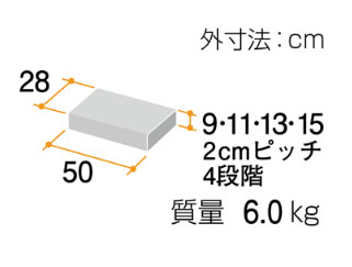 ・屋内・屋外でも使用可能な補助手すり「置くだけシリーズ」の新タイプ。 ・たちあっぷ540に取り付けることができるステップ台ハイタイプです。 ●サイズ/幅50×奥行28×9〜15cm ●重さ/6kg ●材質/ステンレス ●対応段差/9〜15cm(4段階/2cmピッチ) ●最大使用者体重/100kg ●生産国/日本 ●標準機能/手すり高さ、角度調整 ●JANコード/4979652520364 ●メーカー/矢崎化工