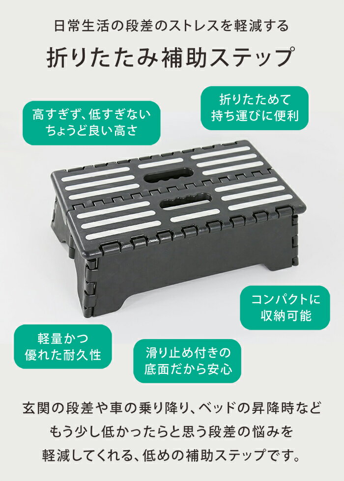 商品名 : 踏み台 折りたたみ ステップ台 介護 低踏み台 高さ13cm 玄関 階段 風呂 段差 補助 昇降 車 ベッド 乗り降り リハビリ 転倒防止 高齢者 子供 コンパクト 収納 持ち運び 便利 頑丈 玄関台 Joy Tree ジョイツリー 送料無料
