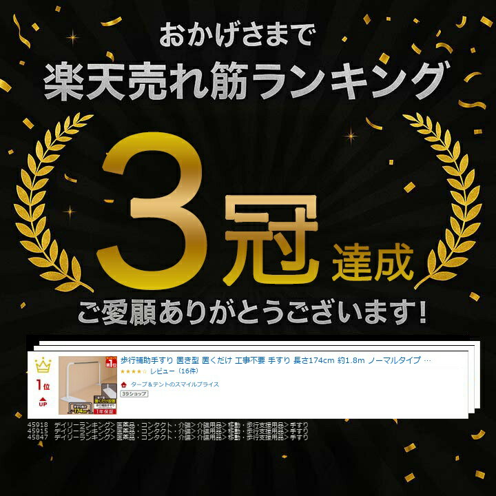商品名 : 歩行補助手すり 置き型 置くだけ 工事不要 手すり 長さ174cm 約1.8m ノーマルタイプ 木目調/ホワイト 玄関 ろう下 介護 介護用品 介護用 片手すり 手摺 歩行補助 補助器具 福祉 転倒防止 歩行練習 歩行支援 リハビリ 移動 据置 1年保証 ■