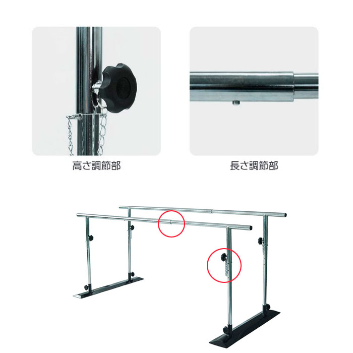 商品名 : 平行棒 コンパクト 簡易タイプ リハビリ 介護 歩行訓練 BP2 高さ調整 長さ調整 カワムラサイクル