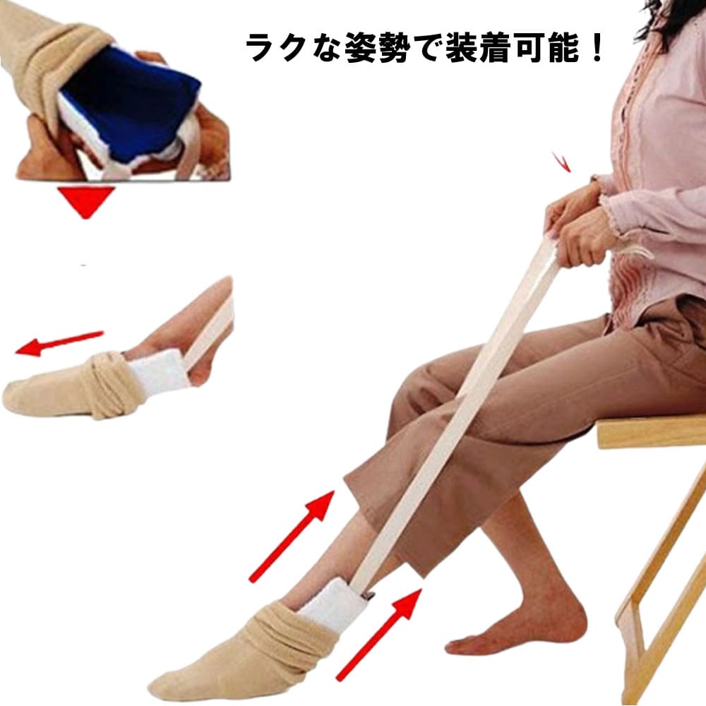 よく一緒に購入されている商品伸縮性靴べら 伸縮 靴ベラ 伸びる 1本 181,758円マニピュレーター マジックハンド つかみ棒 介1,998円■商品説明■ ソックスエイド 靴下エイド ソックススライダー 補助具 介護 リハビリ 訓練具 自助具 敬老の日 靴下 サポート自助具 介護用品 介護 ストッキング履き補助具 便利 妊婦 シニア 便利 グッズ 送料無料 ソックスエイド 靴下エイド ソックススライダー 補助具 介護 リハビリ 訓練具 自助具 敬老の日 靴下 サポート自助具 介護用品 介護 ストッキング履き補助具 便利 妊婦 シニア 便利 グッズソックスエイド。靴下を自分で履けない人の補助具、足もとまで手が届きにくい方が、靴下を履く時の自助具です。靴下エイドを使うと、自分一人で、履けるようになります。前かがみになることが困難な妊娠中の方、動きの制限がある方にもおすすめです。くつ下をセットしてスライドするだけです。内側はすべりの良い布、外側はすべりにくい布で覆われ、足の出し入れがスムーズです。※ウエストまであるタイプのストッキングにはお使いいただけません。シンプル設計で軽量コンパクトなので、持ち運びや収納に便利です。手洗いもできます。 類似商品はこちらボタン掛け ボタンエイド ボタン通し 自助具 1,398円手すり 介護 ベッド 起き上がり 布団 立ち上2,410円ギターレスト 吸盤 支持 具 ギター 支持具 2,118円マニピュレーター マジックハンド つかみ棒 介1,998円犬 介護 ハーネス 大型犬 歩行補助 介護用品1,998円~ボタンエイド ボタンフック 片手で簡単 ボタン1,310円介護 シャンプー 大人 用 便利 グッズ 寝た1,298円車 カーテン リア 運転席 後部座席 フロント1,010円スカリ 釣り ルアー ビク 釣網 ラインワイン688円新着商品はこちら2026/1/23Switch2 ケース TPU マット カバー1,580円2026/1/23コーナークリップ 5個セット 三角クリップ 書498円2026/1/23ブックバンド ペンケース ペンホルダー ゴムバ598円再販商品はこちら2026/1/23タブレット スマホホルダー 車 車載 カップ 2,480円2026/1/23Moto Razr 50 / Razr 2025,688円2026/1/23iPhone 16 Plus ガラスフィルム 1,275円2026/01/24 更新 ソックスエイド 靴下エイド ソックススライダー 補助具 介護 リハビリ 訓練具 自助具 敬老の日 靴下 サポート自助具 介護用品 介護 ストッキング履き補助具 便利 妊婦 シニア 便利 グッズ