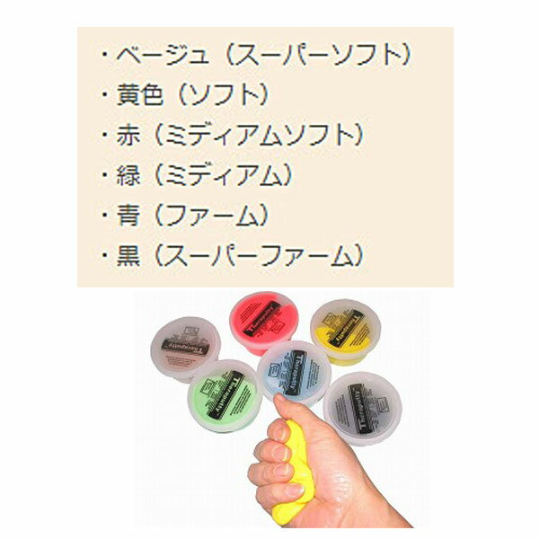 ※北海道・沖縄県・離島・一部地域は商品代金に関わらず追加送料がかかる場合があります。・指、手のひらを鍛えるトレーニング用シリコンパテ。85gのたっぷりサイズ。 ・容器の外に出していても固くなったり乾燥したりしません。 ・6段階の固さから選ぶことができます。 ・リハビリに、握力アップのために、手、指のストレッチに。 ●重さ/85g ●材質/シリコン ●タイプ/ スーパーファーム(黒) スーパーソフト(ベージュ) ソフト(黄色) ミディアムソフト(赤) ミディアム(緑) ファーム(青) ●JANコード スーパーファーム(黒):4582183391527 スーパーソフト(ベージュ):4582183391473 ソフト(黄色):4582183391480 ミディアムソフト(赤):4582183391497 ミディアム(緑)4582183391503 ファーム(青)4582183391510 ●メーカー名/プロト・ワン