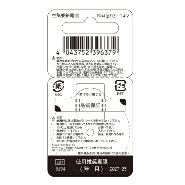 パワーワン|power one 補聴器用電池 空気亜鉛電池/無水銀タイプ powerone PW041