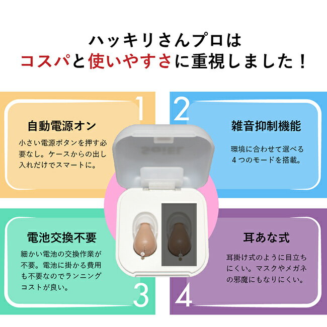 商品名 : 充電式デジタル耳穴補聴器 ハッキリさんプロ 1個 SLI-HAP01 1-2W