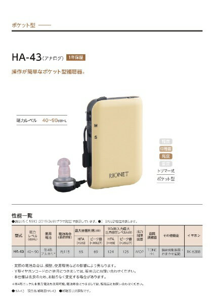 HOME -> 補聴器 -> 耳あな式 -> リオネット|Rionet HA-43(ポケット型)