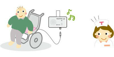 ●サイズ/シートセンサー:幅30×奥行32×厚さ0.6cm・ケーブル長さ:約1m、マルチアラーム2:幅13.3×奥行3.5×高さ7.4cm●重さ/シートセンサー:約310g、マルチアラーム2:約270g●材質/シートセンサー:PVC、マルチアラーム2:ABS樹脂●電源/単3形乾電池×3●生産国/日本●抗菌加工、防滴加工●一方向 ・車いすから立ちあがると、その場でメロディが鳴り続け、座ると止まります。・車いすの座面に敷くセンサーです。クッションんお下に敷くので、気になりません。・音は3種類のメロディと大音量のブザー音から選択できます。・新構造により、座面からのズリ落ちも報知します。・病院や施設でのご利用に。 【テクノスジャパン】