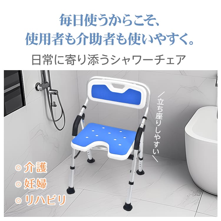 商品名 : シャワーチェア 背もたれ ひじ掛け 介護用 風呂椅子 介護椅子 入浴 高さ調節 お風呂 伸縮式 高齢者 軽量 入浴補助 介助 バスチェア 風呂イス クッション マット 簡単組立 安全設計 脚ゴム 耐荷重 150kg 立ち上がりやすい 妊婦 リハビリ 肘掛け in030