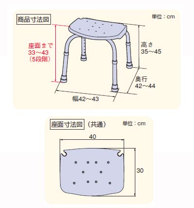 ●サイズ/幅42×奥行42×高さ35〜45cm、座面高さ:33〜43cm ●重さ/約1.9kg ●材質/座部:PE、パイプ:アルミニウム ●耐荷重/100kg ●要組立 ・洗い場が狭く、できるだけコンパクトなものがよいという方に。 ・浴槽壁にピッタリと横づけできる脚部および脚ゴム形状。 メーカー型番 : 535-420 JANコード : 4970210368114 TAISコード : 00221-000155