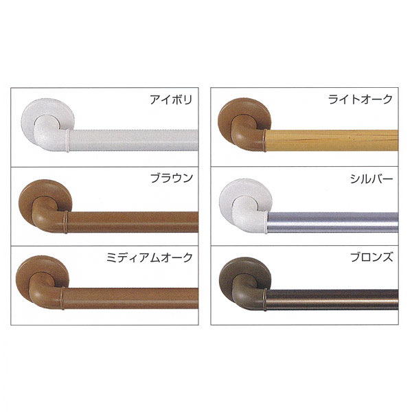 ●らくらく取付け、らくらく取替え 材質:アルミ抗菌樹脂コーティング+樹脂・抗菌アルマイト+樹脂/A4×30、6×30 ナイロンプラグ 仕上げ:アイボリ/ブラウン/ミディアムオーク/ライトオーク/シルバー/ブロンズ サイズ:800mm 直径:32Φ 耐荷重:60kg