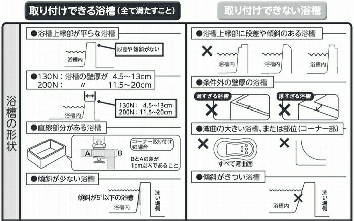 ※ご注意※ 当商品につきましては、商品梱包を開封致しますと交換・返品が出来かねてしまいます。 メーカーHPやサイズ・取付可能かを購入前によくご確認いただいた上でのご購入をお願い致します。 ご迷惑をおかけいたしますが、何卒宜しくお願い致します。 ・楽らく簡単!!しっかり取り付け ・工具不要で、グリップの高さ・幅の調節が簡単 ・ハンドル締め付け時、トルク制御で適正な取り付けが可能 ・浴槽壁の幅が4.5〜13cmまで可能 ・どこからでも握れる円形グリップ ・手すりの高さは、浴槽上縁から11〜26cm(6段階)に調節可能 ●サイズ/ 幅18×奥行29〜38×高さ42cm 手すり部高さ:11〜26cm(6段階/3cm) ●重量/約3.8kg ●材質/アルミ、ステンレス、PP、エラストマー ●取付可能サイズ/縁幅:4.5〜13cm ●最大使用者体重/80kg ●生産国/台湾 ●SIAA防カビ加工 ●カラー/レッド、ブルー、グリーン ●品番/ レッド:536-612 ブルー:536-613 グリーン:536-618 ●JANコード/ レッド:4970210838198 ブルー:4970210838204 グリーン:4970210857717 ●メーカー/【アロン化成】 ※お買い上げいただく際は、必ずメーカーのサイトなどで使用可能かどうか確認のうえ、ご注文をお願いします。(取扱説明書なども掲載しています) すべての浴槽で使用できるとは限りません。 製品に関するお問い合わせはこちらまでお願いします。 アロン化成株式会社 お客様相談室 0120-86-7735 祝祭日以外の 月〜金 9:00〜17:00(12:00〜13:00はのぞく)