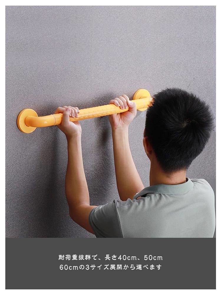 立ち上がり補助 介護用手すり トイレ用 転倒防止 お風呂 浴室 用 手すり 立ち上がり サポート 高齢者 介護 セーフティハンドル 暗闇でも見つかりやすい夜光リングつき立ち上がり補助手すり。 "暗闇でも見つかりやすい夜光リングつき立ち上がり補助手すり。 足元が不安な場所、危ない場所にあれば安心の転倒予防手すり。 玄関や寝室、階段などはもちろん、トイレやお風呂場など水周りも設置できます。 計算された太さ(約3.5cm)、握りやすくちょうどいいサイズに滑り止め加工が施され、手が濡れたても安全性が確保できます。 耐荷重抜群で、長さ40cm、50cm、60cmの3サイズ展開から選べます。豊富なサイズ展開で、ご家庭用はもちろん、ホテルや病院なども適用します。 高齢者の立ち上がりやすいサポートとして、祖父や父母へのプレゼントとしてお勧めです。" 2立ち上がり補助 介護用手すり トイレ用 転倒防止 お風呂 浴室 用 手すり 立ち上がり サポート 高齢者 介護 セーフティハンドル 暗闇でも見つかりやすい夜光リングつき立ち上がり補助手すり。 "暗闇でも見つかりやすい夜光リングつき立ち上がり補助手すり。 足元が不安な場所、危ない場所にあれば安心の転倒予防手すり。 玄関や寝室、階段などはもちろん、トイレやお風呂場など水周りも設置できます。 計算された太さ(約3.5cm)、握りやすくちょうどいいサイズに滑り止め加工が施され、手が濡れたても安全性が確保できます。 耐荷重抜群で、長さ40cm、50cm、60cmの3サイズ展開から選べます。豊富なサイズ展開で、ご家庭用はもちろん、ホテルや病院なども適用します。 高齢者の立ち上がりやすいサポートとして、祖父や父母へのプレゼントとしてお勧めです。" 2