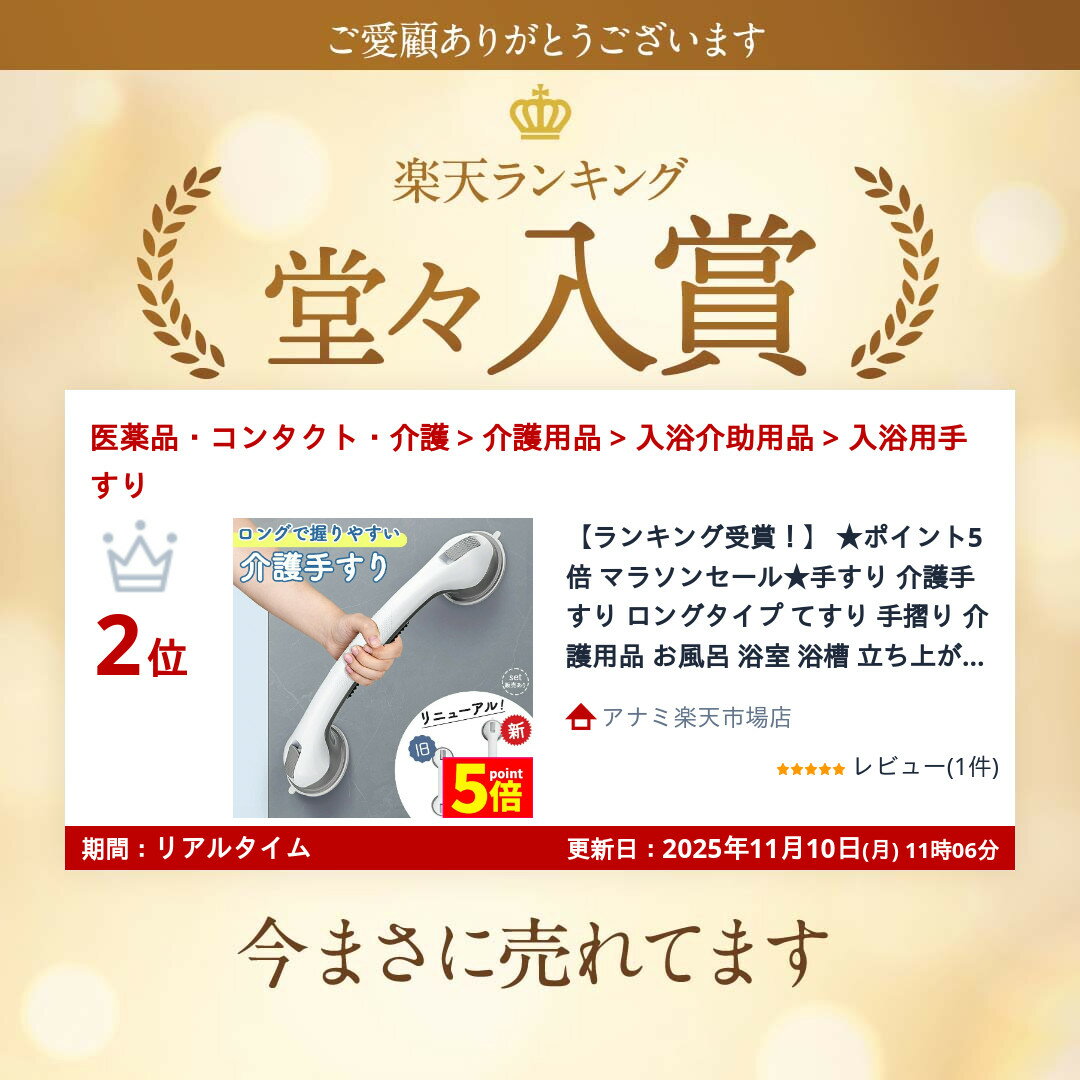 商品名 : ★期間限定!ポイント5倍★手すり 介護手すり ロングタイプ てすり 手摺り 介護用品 お風呂 浴室 浴槽 立ち上がり 吸盤 補助 トイレ 立つ 高齢者 転倒防止 自宅 掴まる ハンドル サポート 壁 入浴 風呂 ガラス タイル 取っ手 持ち