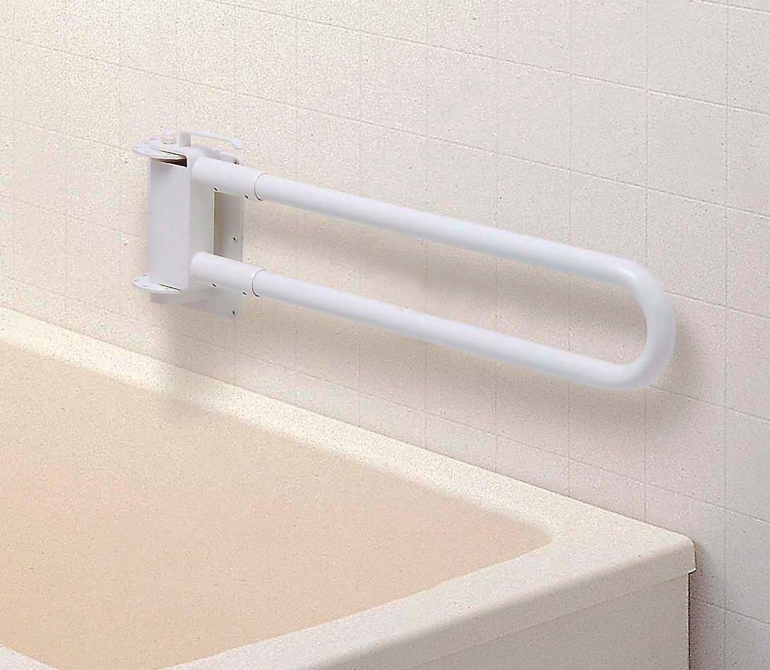 こちらの商品はメーカー直送となります。代金引換不可商品となりますのでご注意下さい。使用しない時には、折りたためる収納タイプの可動手すりです。【材質】手すり : アルミ合金 金具 : ステンレス【付属部品】壁取付ビス Φ5.8×50 6本 壁取付プラグ Φ8.0×40 6本※取付は、工務店等の専門業者に依頼し、壁面に十分な強度があることを確認してから取り付けてください。また、ユニットバスへの取付はできません。
