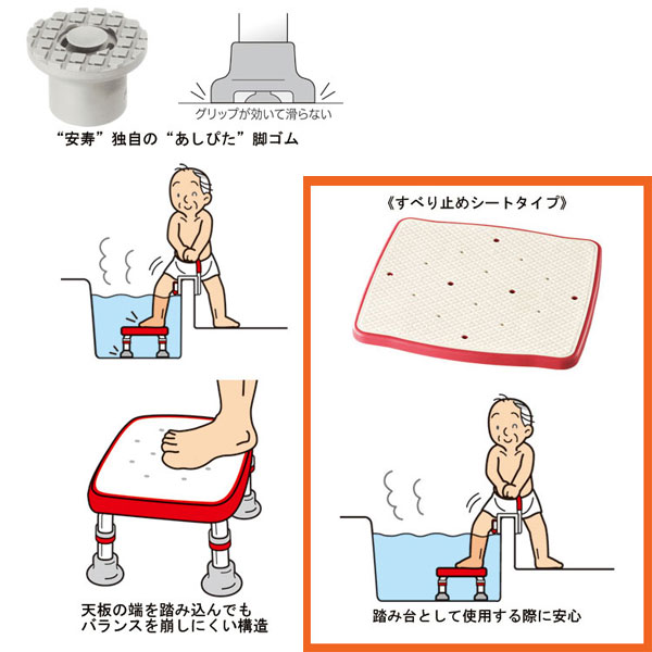 HOME -> 入浴用品 -> 浴槽台・踏み台 -> アロン化成 安寿 ステンレス製浴槽台R“あしぴた” 標準 すべり止めシートタイプ 17.5-25 (お風呂用踏台 おふろ用品 浴槽内いす 介護 用 踏み台)介護用品