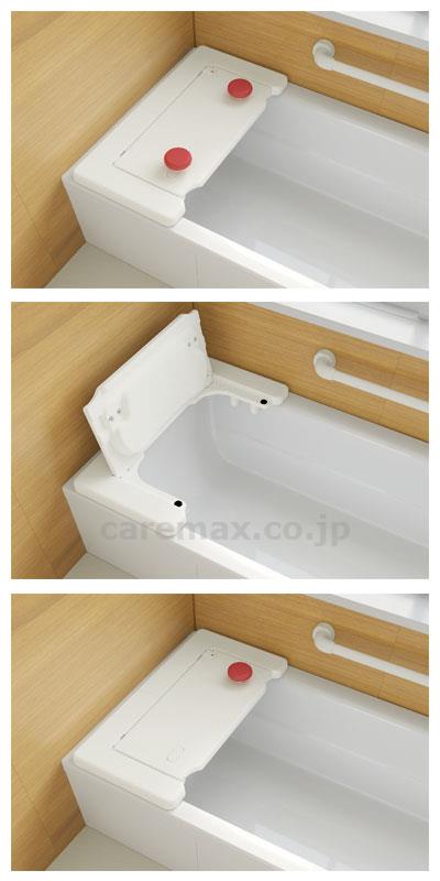 商品の仕様 ●サイズ/幅76×奥行40×厚さ3.5cm ●重さ/5.8kg ●材質/PP、PE、アルミ、ステンレス、ABS、エラストマー ●取付可能サイズ/内寸:56~69cm ●最大使用者体重/100kg 商品の説明 ・はねあげ座面で入浴動作が楽になる。 ・ゆっくり閉まる座面:オイルダンパーを採用しているので、座面からうっかり手を放してもゆっくり閉まります。 ・壁付け手すりと併設可能:座面端部と壁の間に距離を設けているので、座面が壁付け手すりに引っかかりません。 ・枕形状の座面裏:はねあげた座面の裏側が枕形状になっており、リラックスした姿勢で入浴できます。 ・アロン独自の「キノコ型グリップ」:グリップを握るのが難しい方でも、グリップに掌を乗せてプッシュアップすることで、身体を移動させることができます。