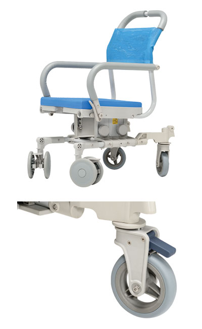 施設様・法人様送り限定となります。 ・狭いスペースでも安心!  自在輪で方向転換も楽々コンパクトシャワーキャリー ・キャスターが方向自在  キャスターが自在輪なので、その場での本体360°の回転や真横移動ができます。  小回りがきくので介助者様の思い通りに移動ができ、狭い場所でもラクラクご利用いただけます。 ・ひじ掛けはね上げ  肘掛けははね上げ式です。  横移乗もラクラク。浴槽への移動が楽にできます。 ・フットレストは簡単に脱着できます  片側ずつ簡単に脱着できますので、立ち座りの時に邪魔になりません。  また、フットレストを外すとコンパクトになります。 ・はね上げフットプレート  フットプレートは横にはね上げ、後方に回転させることが出来るので、移乗の際に邪魔になりません。 ・ストッパーがついておりますので、より安全にご使用いただけます。 ●サイズ/  幅47×奥行90(短奥行仕様時74.5)×高さ84〜92cm  座面:幅37×奥行40cm  座面高:38.5〜46.5cm(5段階/2cm)  ひじ掛け内寸:39cm ●車輪サイズ/前輪12.7×後輪12.7cm ●重さ/10.5kg ●材質/  本体:アルミ(粉体塗装仕上げ)・ステンレス  座シート:EVA  背シート:ナイロンメッシュ ●最大使用者体重/約100kg ●標準機能/ひじ掛け跳ね上げ、フットレスト着脱、フットブレーキ ●生産国/日本 ●完成品 ●メーカー品番/SWR-132 ●JANコード/4519283002886 ●メーカー名/ウチヱ