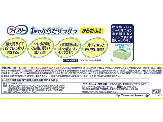 商品名 : ユニチャーム ライフリー さらさらからだふき 30枚 からだふき 入浴ケア 介護 介助