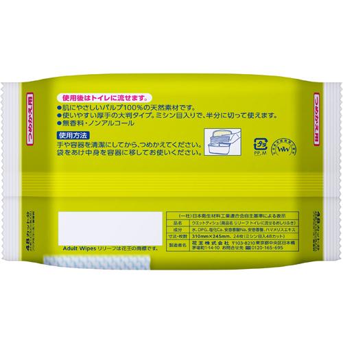 商品名 : リリーフ トイレに流せるおしりふき つめかえ用(24枚(ミシン目入48カット)*2コセット)