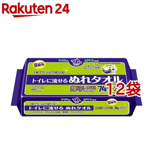 アクティ トイレに流せる ぬれタオル ウェット 大判・厚手(76枚入*12袋セット)