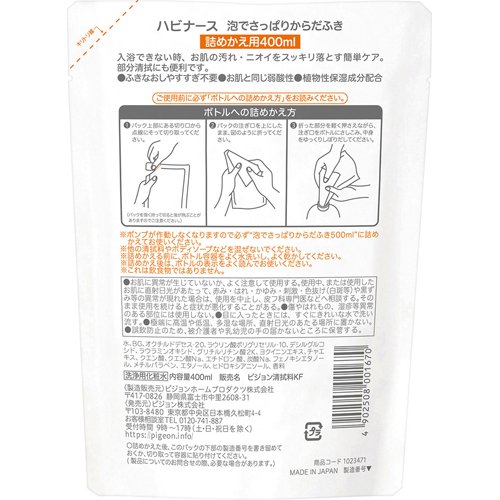 商品名 : ハビナース 泡でさっぱりからだふき 詰めかえ用(400ml*6袋セット)
