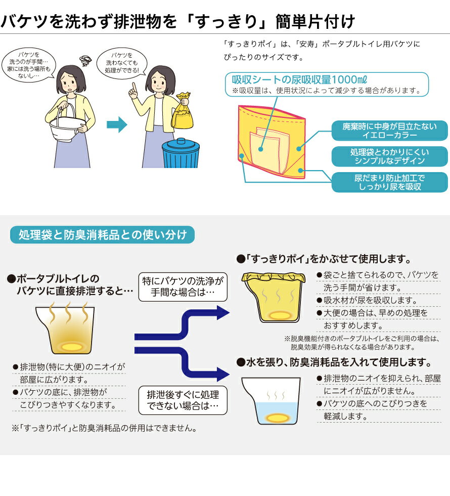 商品名 : 安寿ポータブルトイレ推奨品 バケツを洗わずすっきり簡単片付け ポータブルトイレ 処理袋 バケツ 簡単 排泄 トイレ 処理 介護 施設 病院 介護用品 福祉 介助