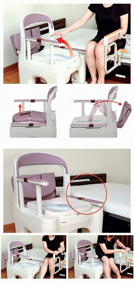 ※お買い上げいただく際は、メーカーのサイトなどで使用可能かどうか確認のうえ、ご注文をお願いします。 【お問合せ先】 パナソニック エイジフリー フリーダイヤル:0120-365-887 部屋の中で家具のように馴染む、落ち着きや安心感をもたらすモカブラウンと、大人の華やかさや幸福感のあるミスティパープルが登場 利用者、介助者の動作に配慮した設計 ・バネの力で簡単に開けられる便フタのオープンアシスト機能 ・ワンタッチで簡単に上げ下げできる昇降肘掛け・・肘掛けを下げると座面がフラットになり移乗の介助が安全 ・脚の高さを13段階に調節可能(便座高さ35〜47cm、1cmピッチ) ・座面の角度が前後に調整可能・・前傾座面(前かがみの排便姿勢を取ったり、立ち上がりが楽)、後傾座面(前方への滑りや転落の危険性を抑制) ・全幅53cmのコンパクトサイズながら、肘掛け内寸は42cmとゆったり ・移動しやすいキャスター付き ・脚の裏面すべてにすべり止めゴム付き ・組み立ても簡単 ・あたたか便座・・便座が冷えている際のショックを軽減 ※一部組み立て式となります。(背もたれ等) ●サイズ/ 幅53×奥行57×高さ74.8〜86.8cm 座面:幅39×奥行41cm 穴部:幅前14・後19.5×奥行29cm ひじ掛け高さ:18〜24cm 便座高:35〜47cm ひじ掛け内寸:42cm ●重さ/10.5kg ●材質/ 本体・便蓋・肘掛カバー:ポリプロピレン 肘掛本体・背もたれ本体:ABS樹脂 背もたれカバー:PE樹脂 ●最大使用者体重/100kg ●付属品/ワンハンドカットペーパーホルダー、消臭液、キャスター ●カラー/モカブラウン、ミスティーパープル ●要組立 ●品番/ モカブラウン:PN-L30203B ミスティーパープル:PN-L30203V ●JANコード/ モカブラウン:4549077173867 ミスティーパープル:4549077173874 ●メーカー/パナソニックエイジフリー (プラスチック製ポータブルトイレ コンパクト おしゃれ)※便座タイプの詳細については、メーカーカタログ、HPにてご確認ください。