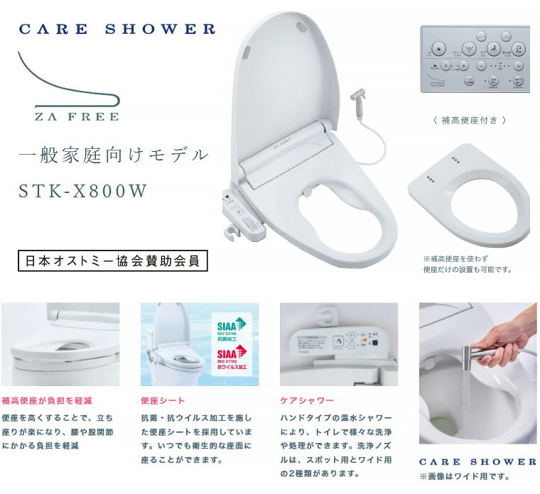 商品名 : トイレ 便座 前広便座 ZA FREE(ザフリー)(温水洗浄便座付き補高便座)リモコンあり 温水ハンドシャワー付き STK-X800W 一般家庭向けモデル さつき │ 温水洗浄 暖房便座 補高便座 抗菌 抗ウイルス 温水 脱臭 流水音 ふた付き オストメイト トイレ高齢者 介護 排泄関連